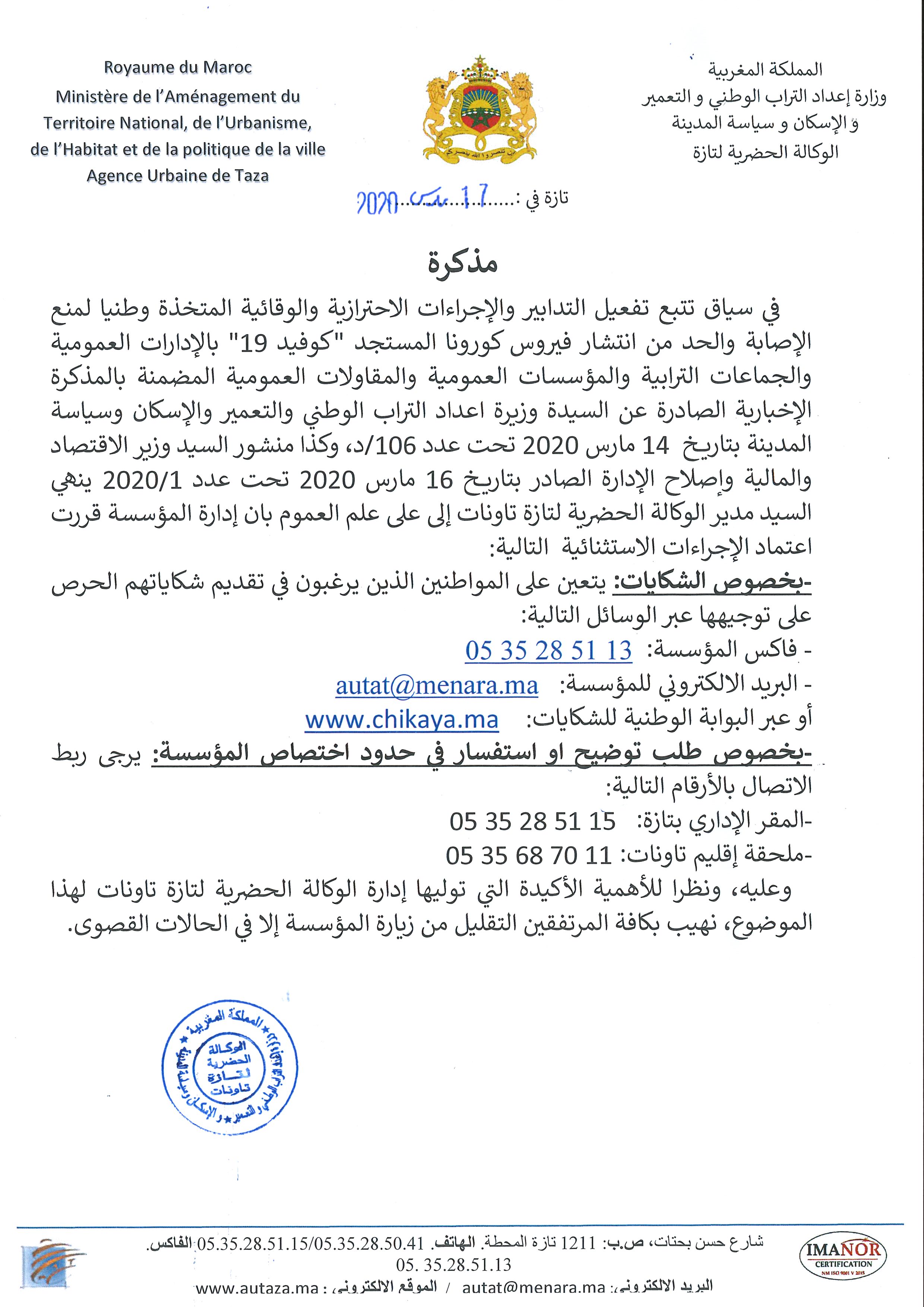 النسخة العربية للموقع الرسمي للوكالة الحضرية لتازة-تاونات | @AUTT 2025 | شروط الإستعمال